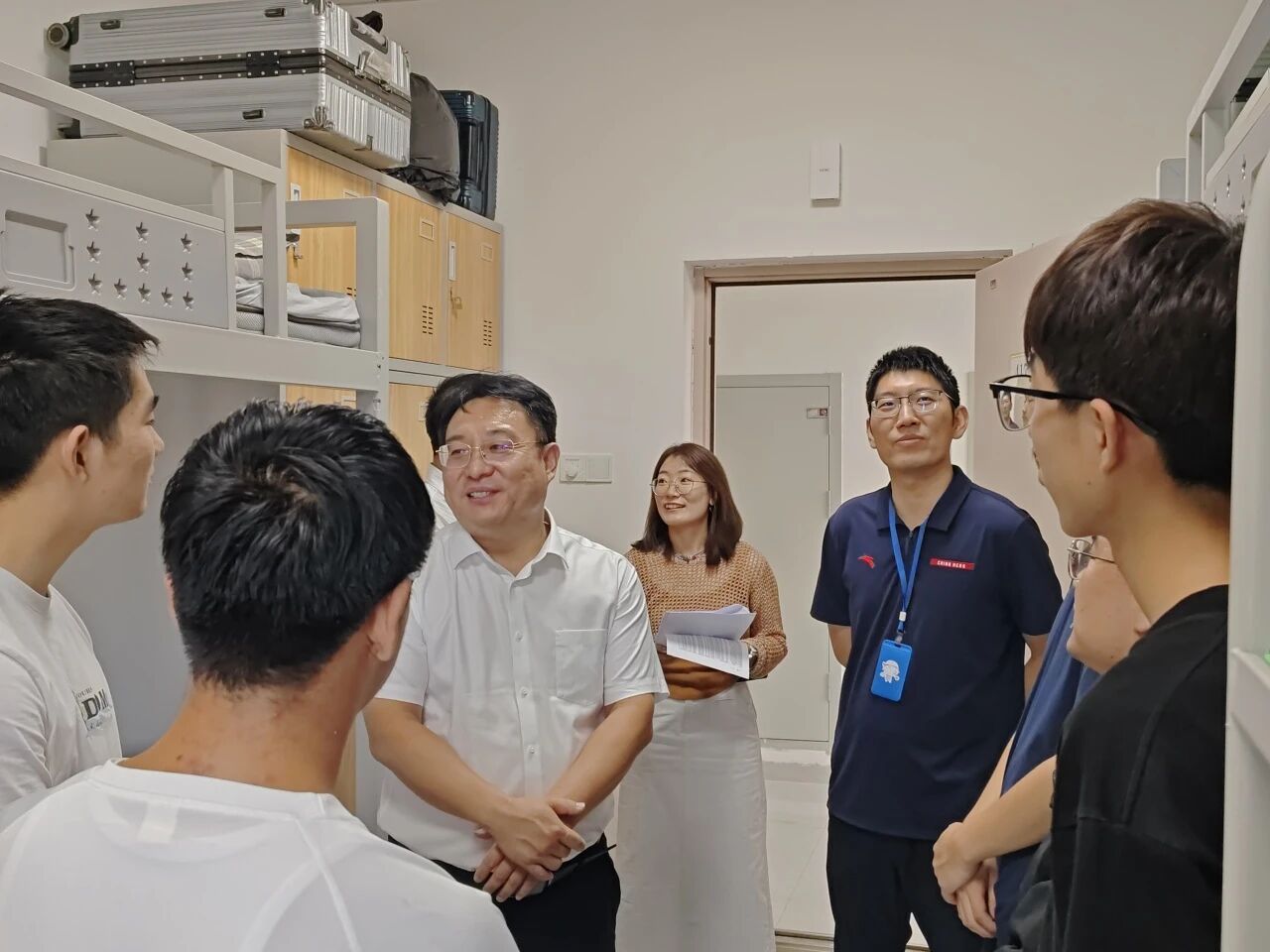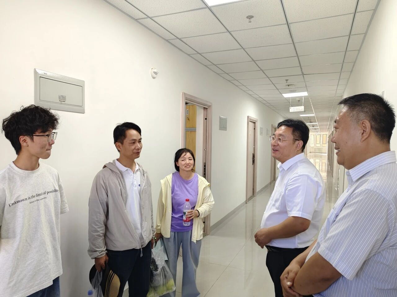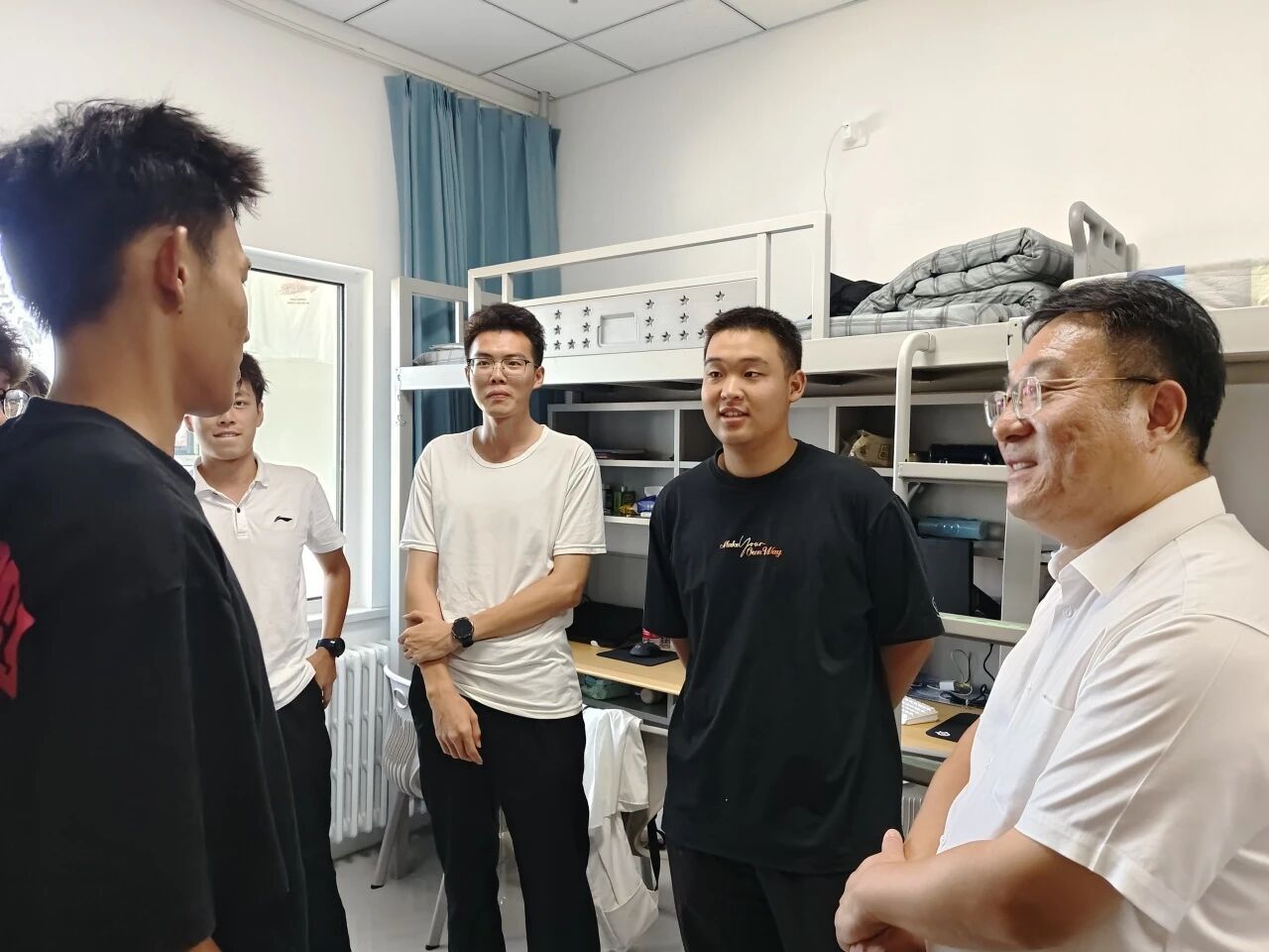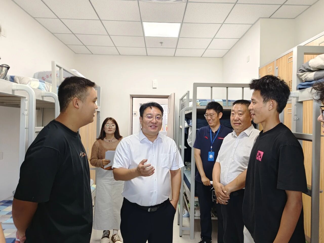 9月9日下午16:30,为深入了解新生入学适应情况,传递学院关怀与温暖,beat365APP副董事长、公司党委书记张新房和公司党委副书记兼副经理冯佃臣带领学院领导班子及新生辅导员走进新生宿舍,开展走访慰问,与2025级新生面对面交流,倾听员工心声,助力新生开启老员工活新篇章。