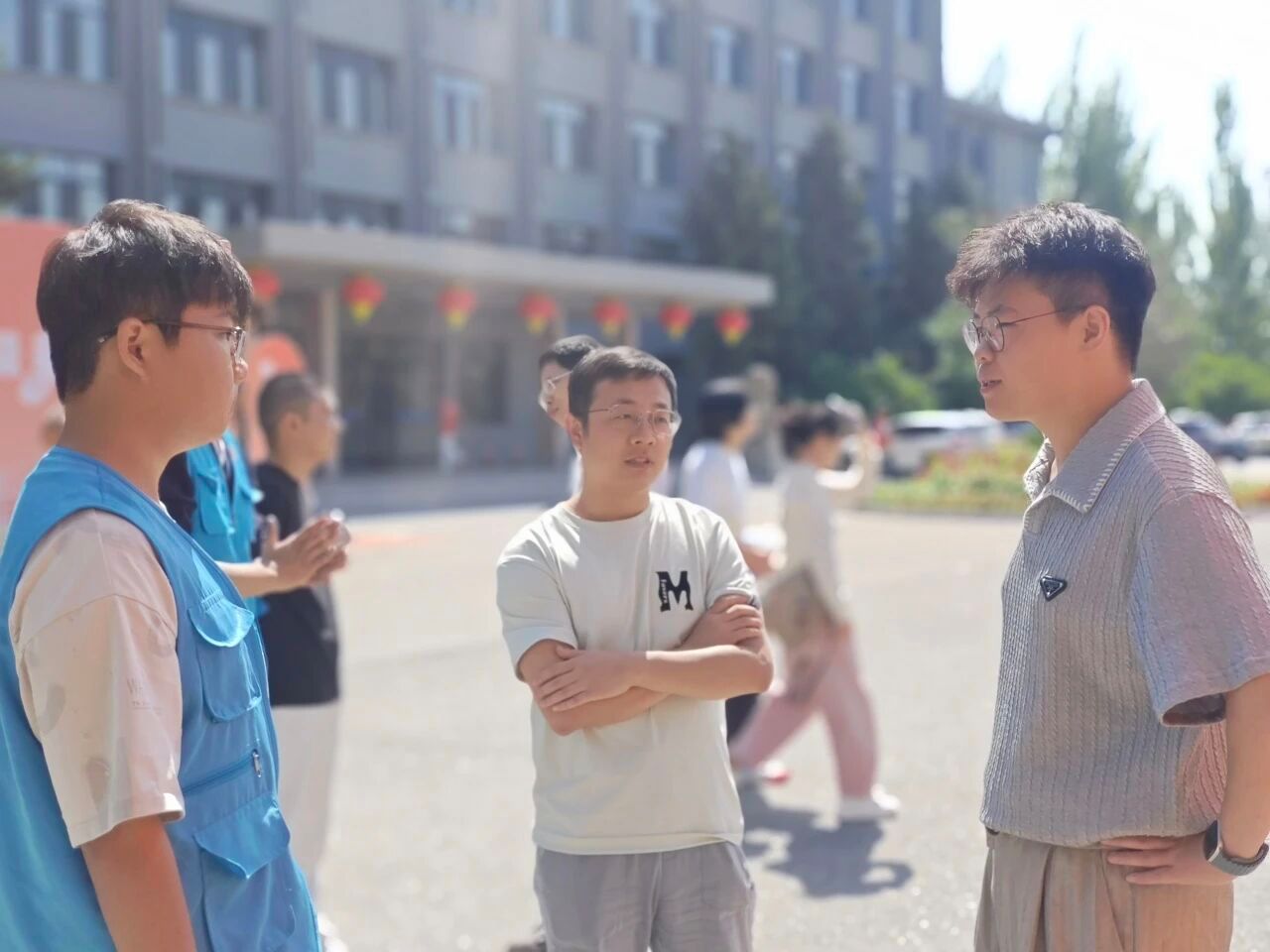 工作人员与教师志愿者默契配合