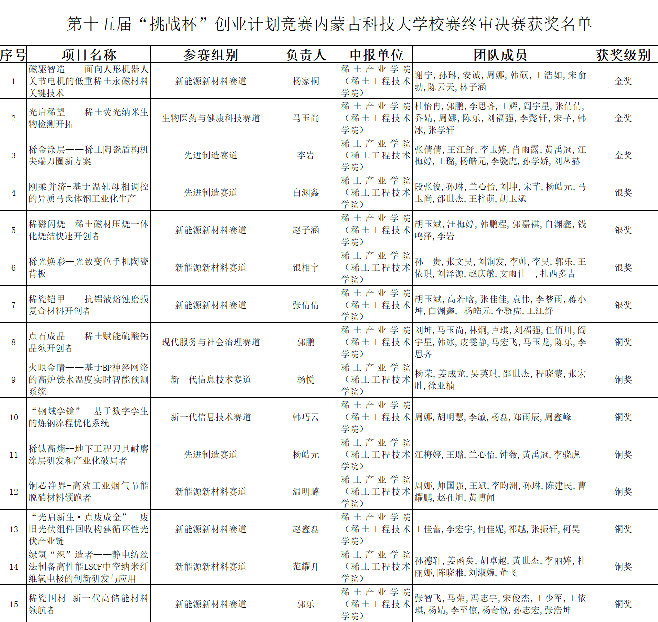 这份优异成绩,正是学院坚持立德树人、深耕创新创业教育、抓实实践育人工作的成果体现。一直以来,学院始终秉持以赛促学、以赛促创的育人理念,积极搭建科创实践平台,鼓励师生主动参与科技创新和创业实践。接下来,学院将继续发挥稀土学科的特色优势,持续提升创新创业教育质量,用心培养更多高素质应用型人才,以科技创新助力区域经济社会高质量发展。