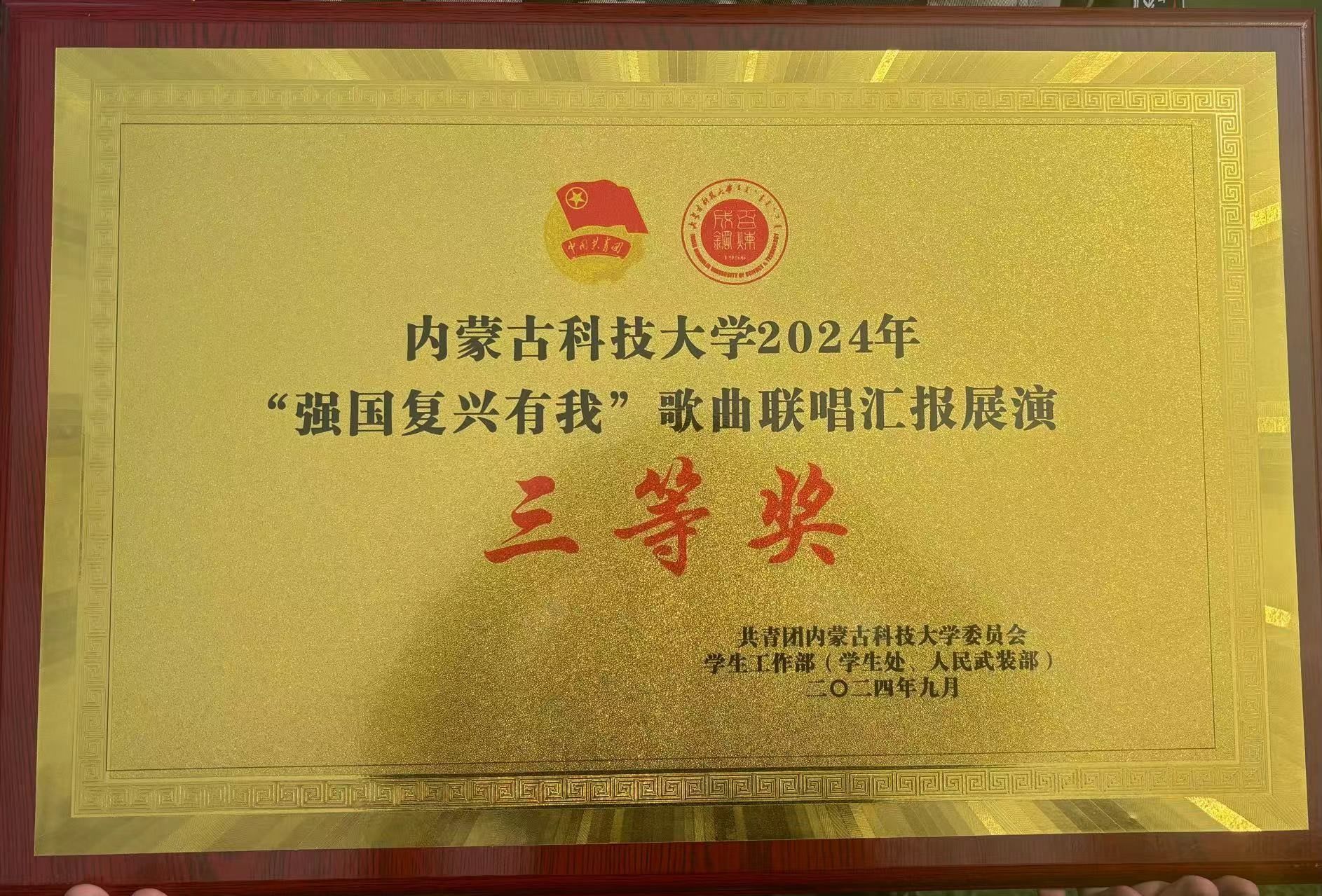 稀土学院获beat365APP2024年“强国复兴有我”歌曲联唱汇报展演三等奖
