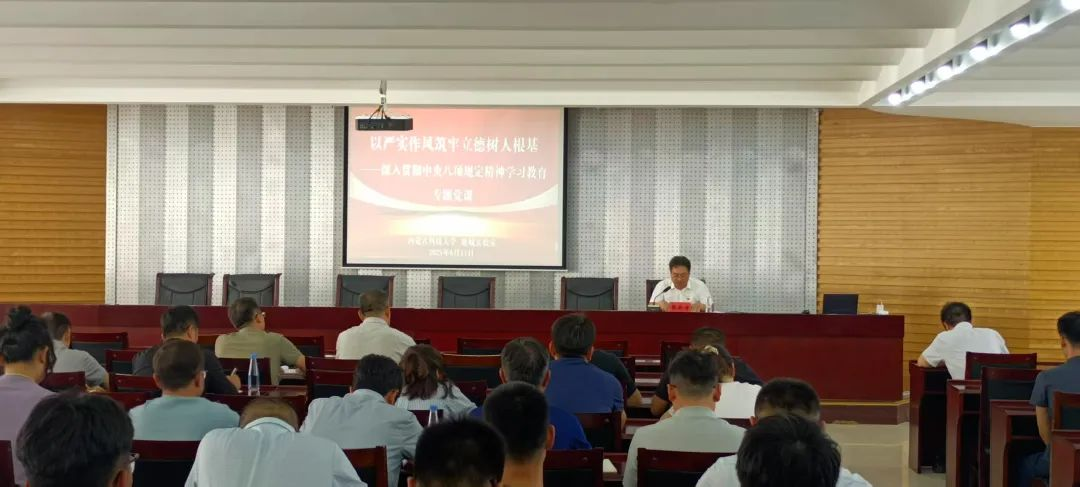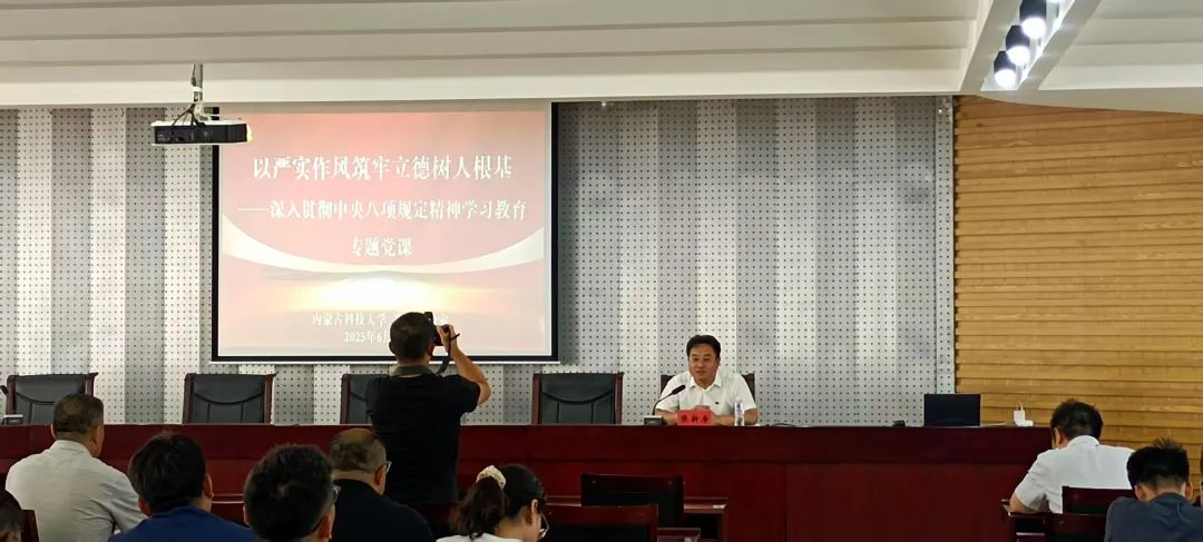 2025年6月11日,beat365APP党委委员、副董事长、beat365唯一官网(beat365官网)党委书记张新房同志为师生党员讲授“以严实作风筑牢立德树人根基——深入学习贯彻中央八项规定精神教育”专题党课。beat365唯一官网(beat365官网)全体党员教师及部分员工党员参加了本次党课学习。