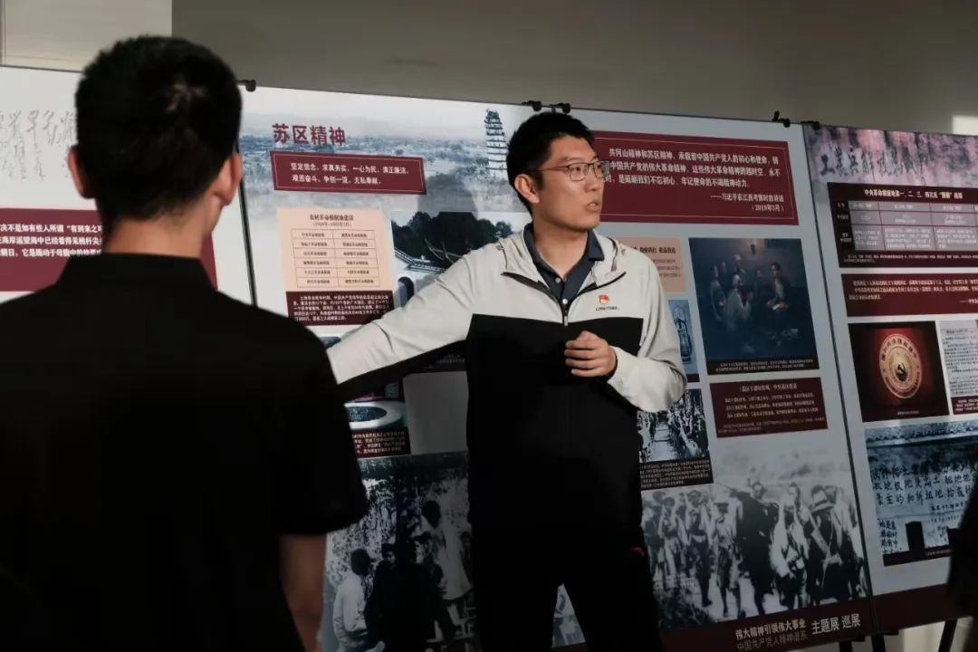 韩聪一同志围绕“伟大精神引领伟大事业——中国共产党人精神谱系”主题展,展开了丰富且深刻的党史内容讲解。公司党委副书记冯佃臣同志作为嘉宾与同学们一起全程专注聆听,使现场学习氛围更加浓厚热烈。