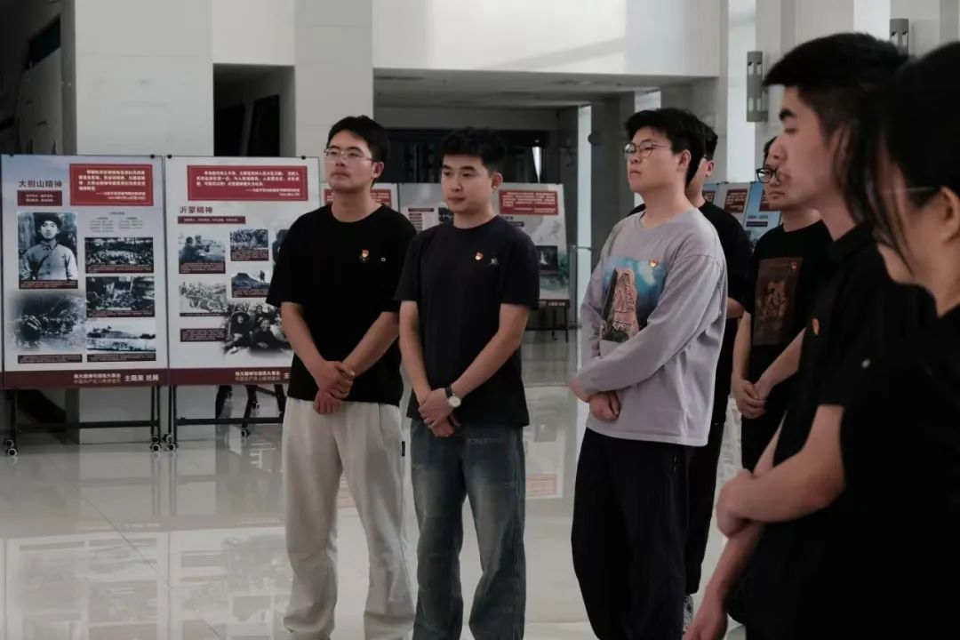 在参观学习过程中,同学们都目不转睛的聆听韩聪一同志的讲解。通过讲解与感悟,大家普遍感受到这些跨越时空的伟大精神,不再是抽象概念,而是先辈们用信仰与奋斗写就的生动注脚。