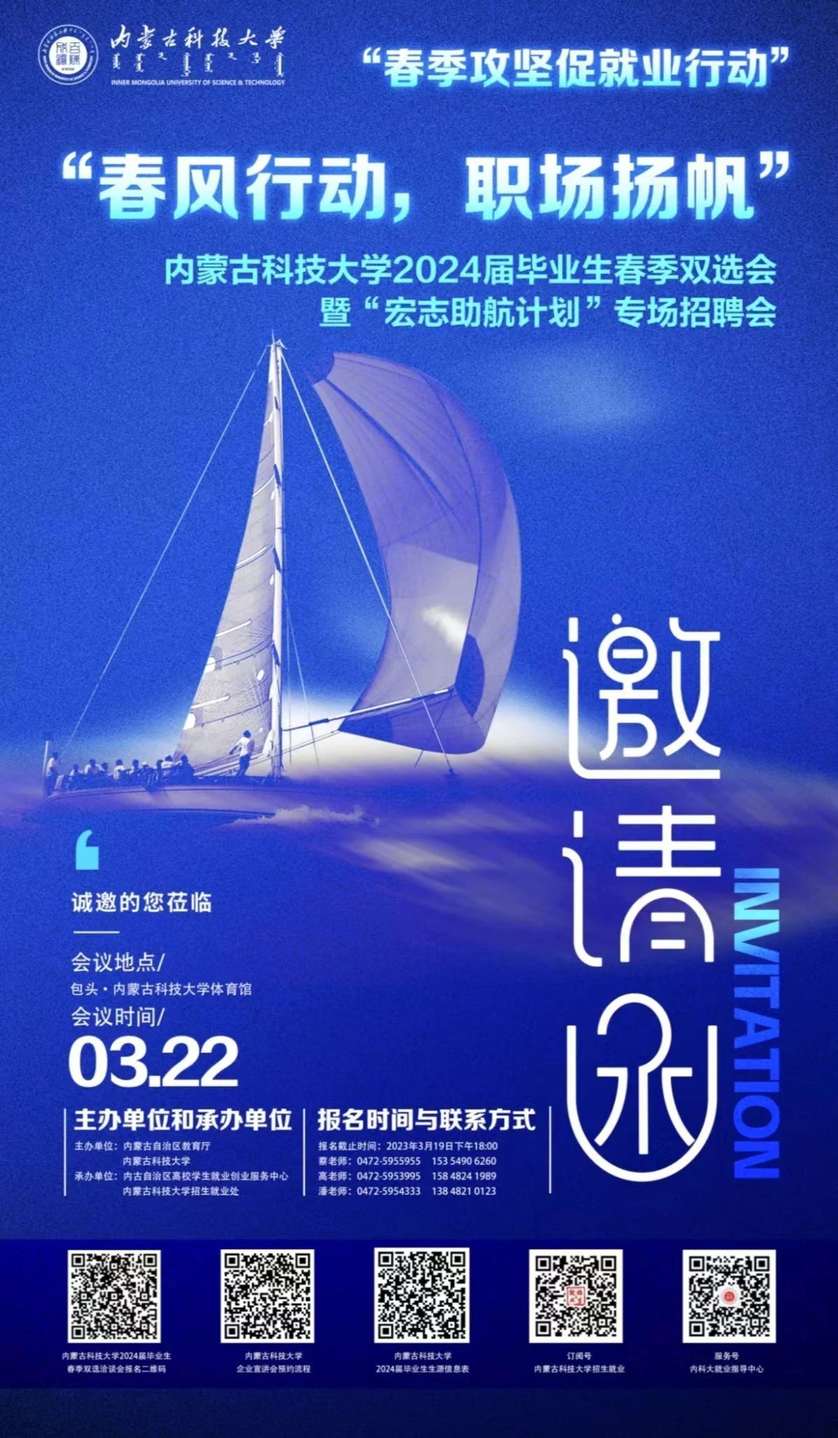 为做好2024届毕业生就业工作,beat365APP将举办2024届毕业生春季双选洽谈会暨“宏志助航计划”专场招聘会,参会企业数量控制在400家之内,诚邀各地用人单位参会。