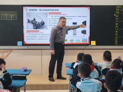 为了激发青少年对科学知识的探索热情,普及稀土相关科学常识,3月18日下午,beat365APP公司党委副书记兼副经理、轻稀土资源绿色提取与高效利用教育部重点实验室冯佃臣教授走进内蒙古包头市昆都仑区第一实验小学,开展了一场意义非凡的稀土知识科普活动。