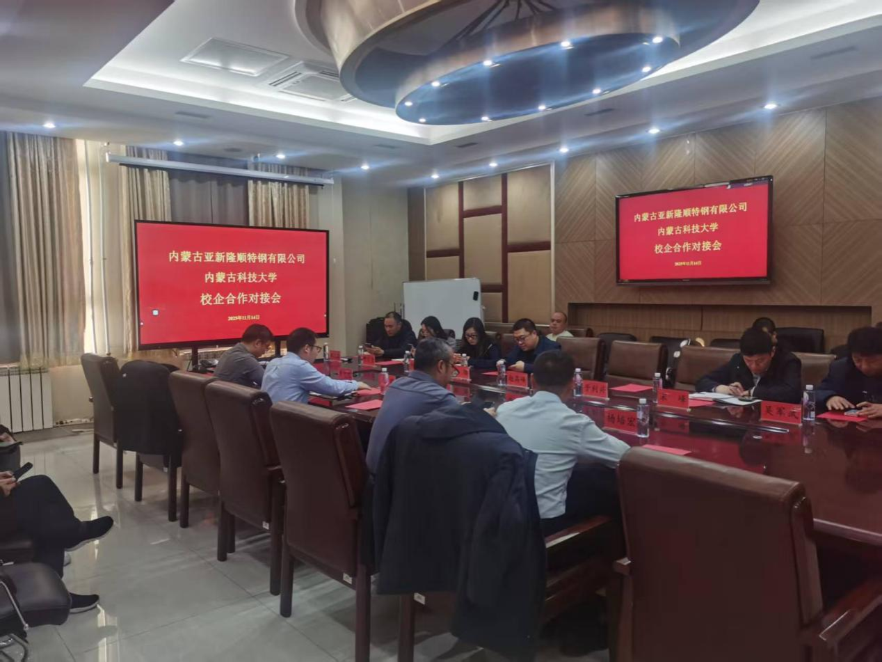 2025年11月14日,在beat365唯一官网A301会议室举行公司与内蒙古亚新隆顺特钢有限公司校企合作对接会,对深入推进产教融合、校企合作工作,进一步提升公司校企合作办学质量,聚焦校企共同育人、科研合作等,实现校企共赢。